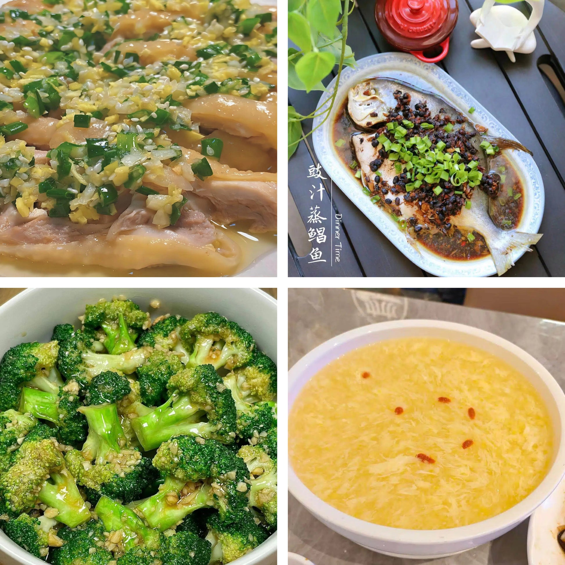 10月23日周四(B餐)家乡菜:广东葱油鸡 豉汁蒸鲳鱼 蒜香西兰花 鸡蓉玉米羹