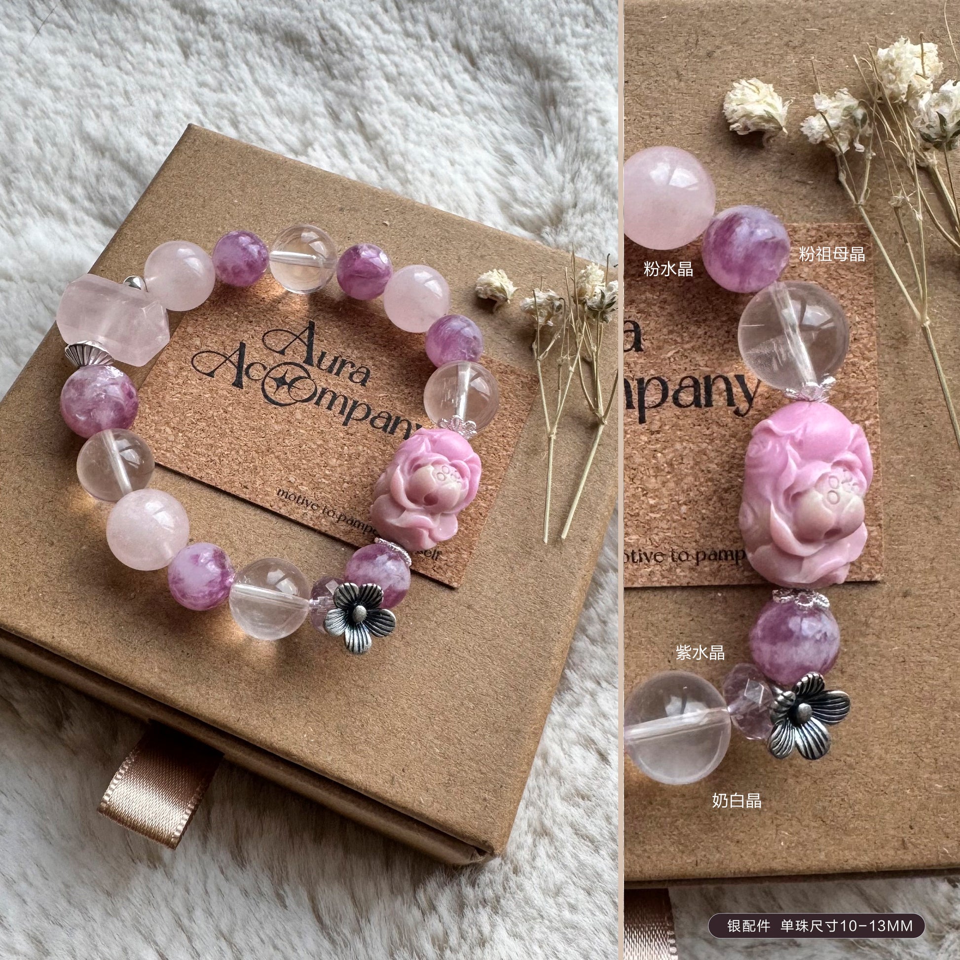 樱粉与霞粉水晶交织,缀满细密手作银花。全新甜系设计,让盈盈仙气与灵动春日在腕间盛放~✨每一颗都藏着漫溢的少女心事。