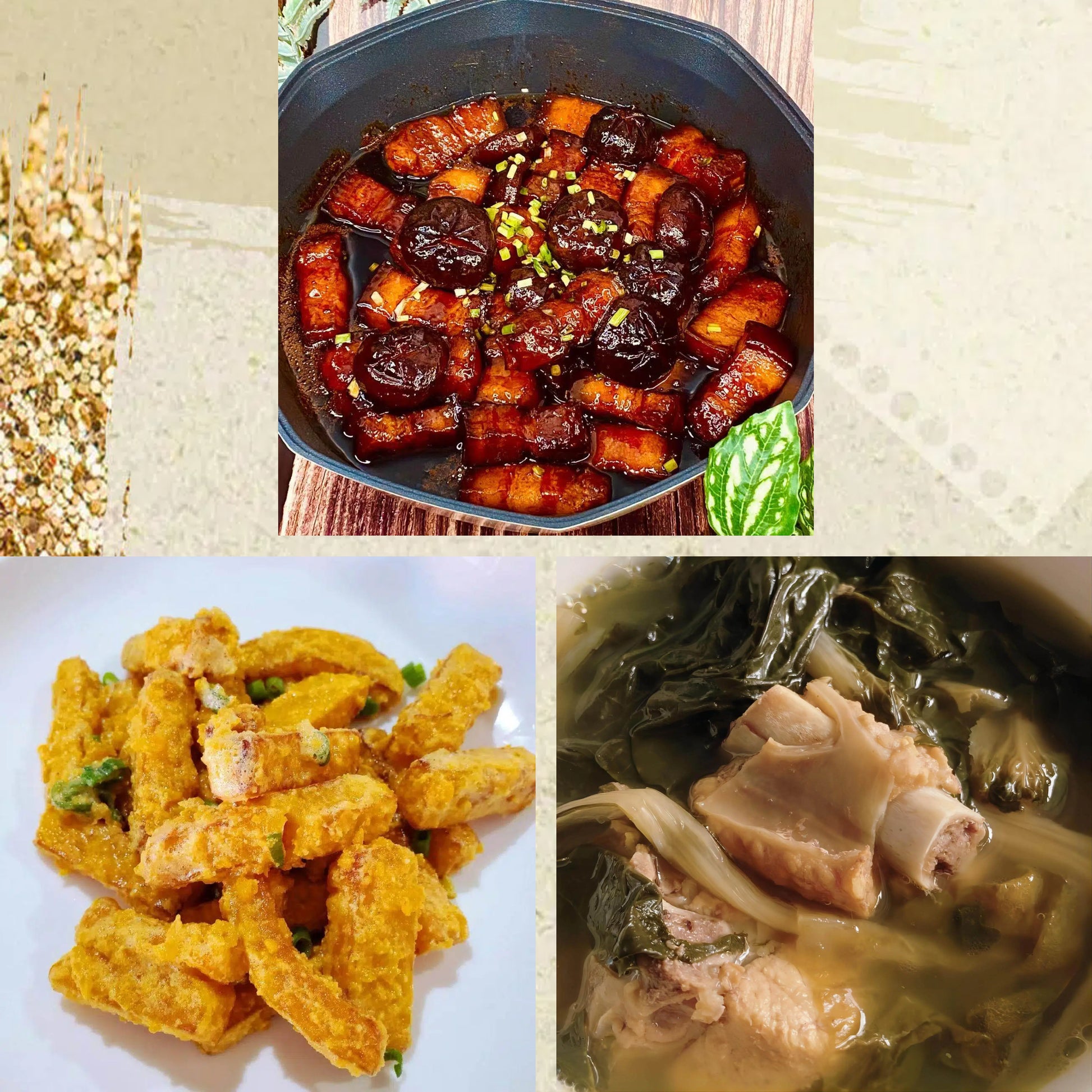 3月2日周一(D餐)精致小餐:五花腩焖香菇 金沙南瓜 白菜干煲猪骨汤