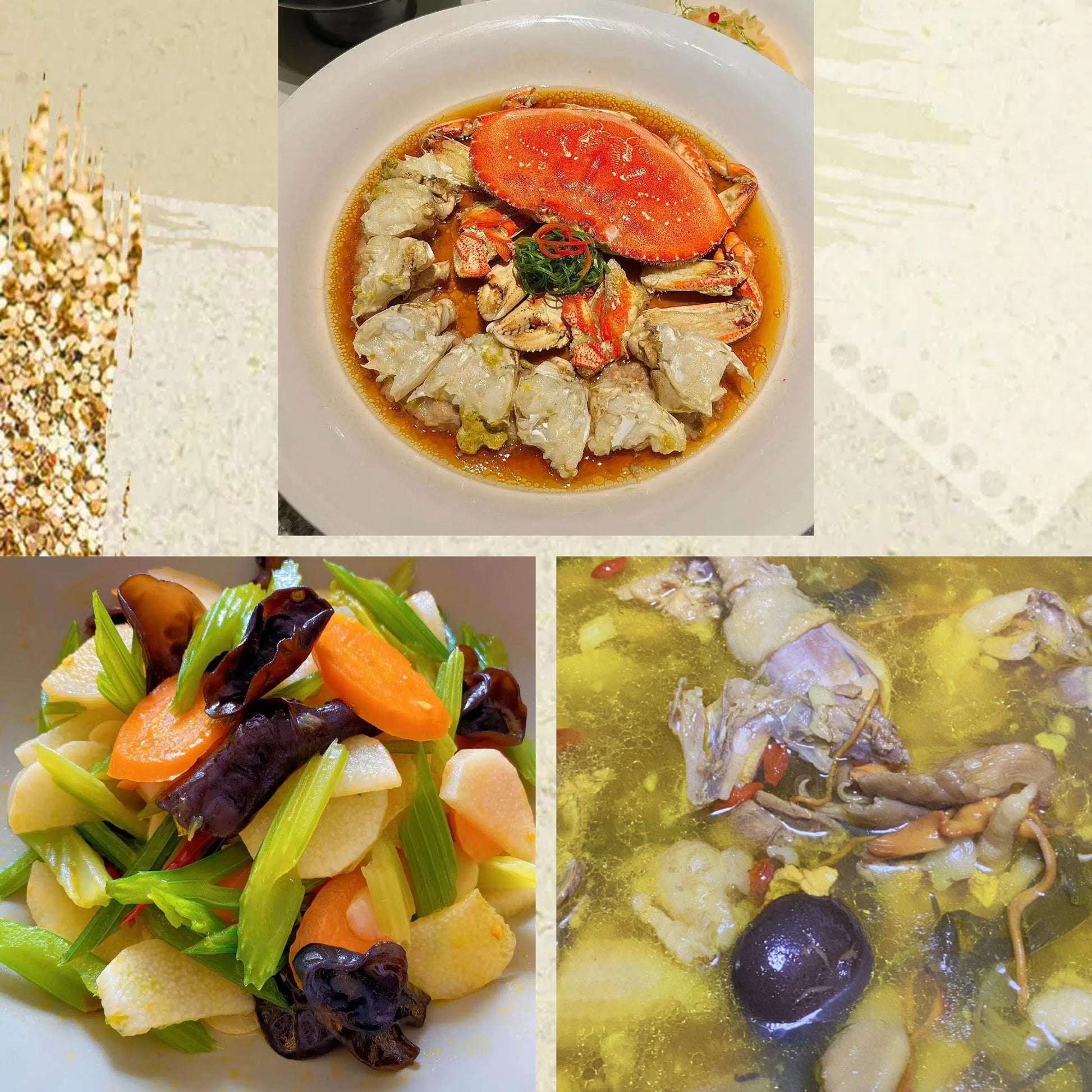 3月8日周日(D餐)精致小餐:花雕醉蟹 西芹炒山药 菌菇土鸡汤